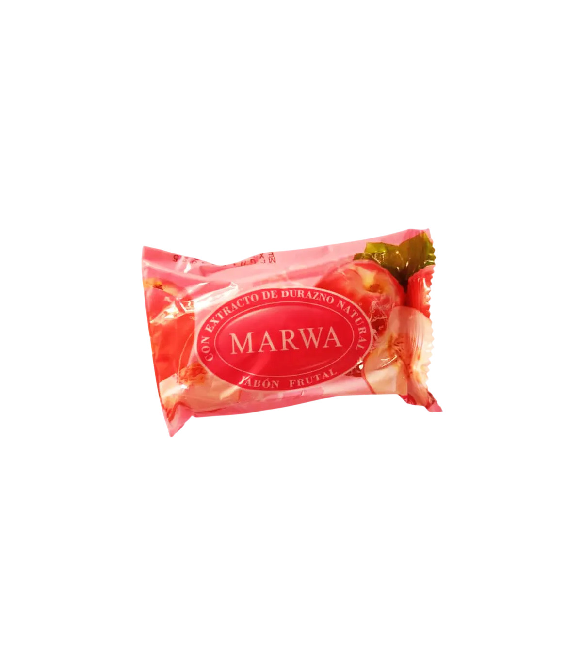 Jabón Frutal Marwa con extracto de durazno 100 g. Limpieza suave e hidratación con aroma frutal. Entregas en La Habana, Mayabeque y Matanzas.