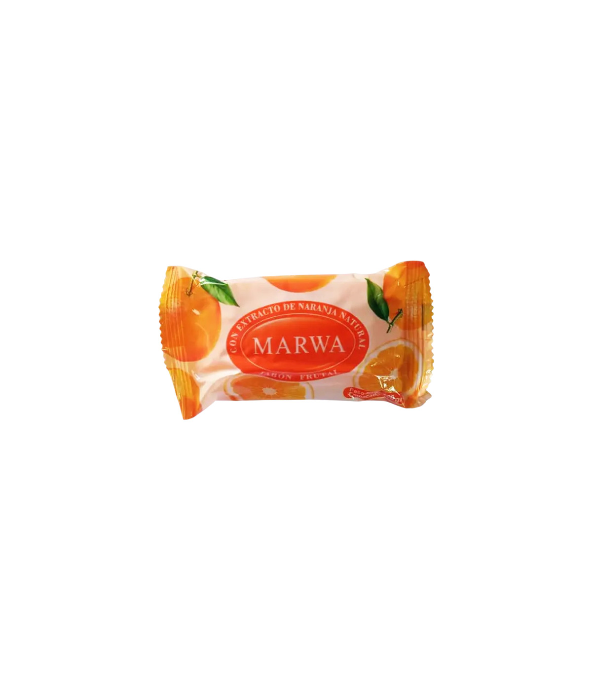 Jabón Frutal Marwa con extracto de naranja 100 g. Limpieza revitalizante con aroma cítrico. Entregas en La Habana, Mayabeque y Matanzas.