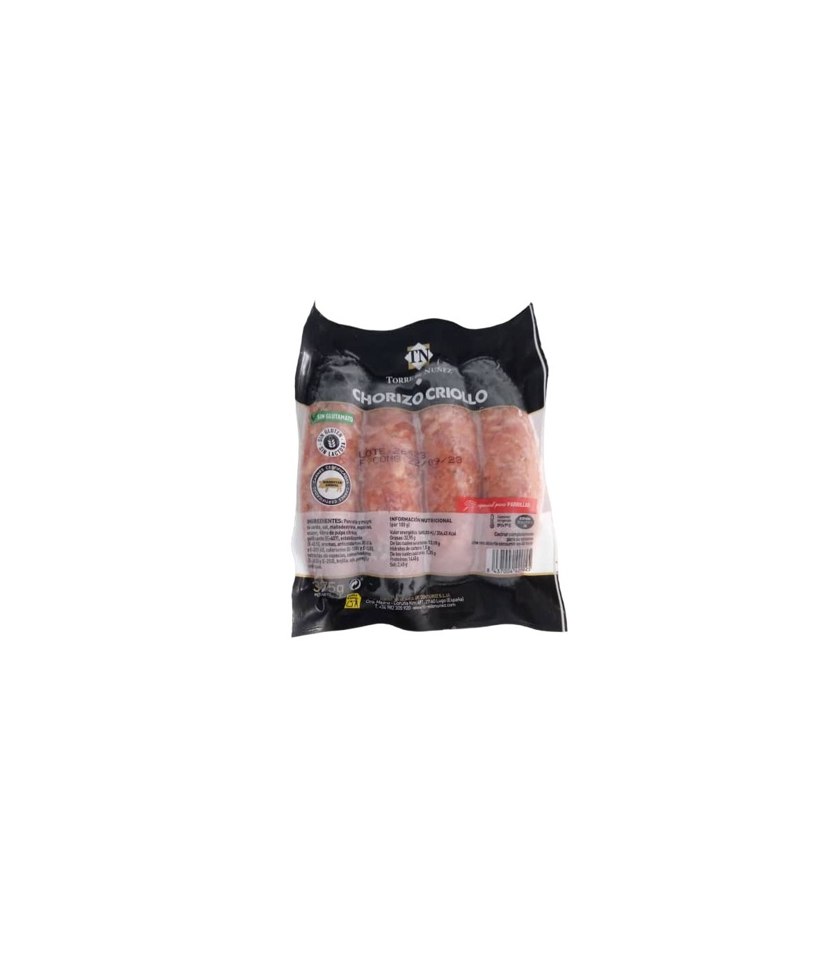 Chorizo criollo Torre de Núñez 375 g, congelado y listo para cocinar, ideal para arroces, guisos y parrilladas.