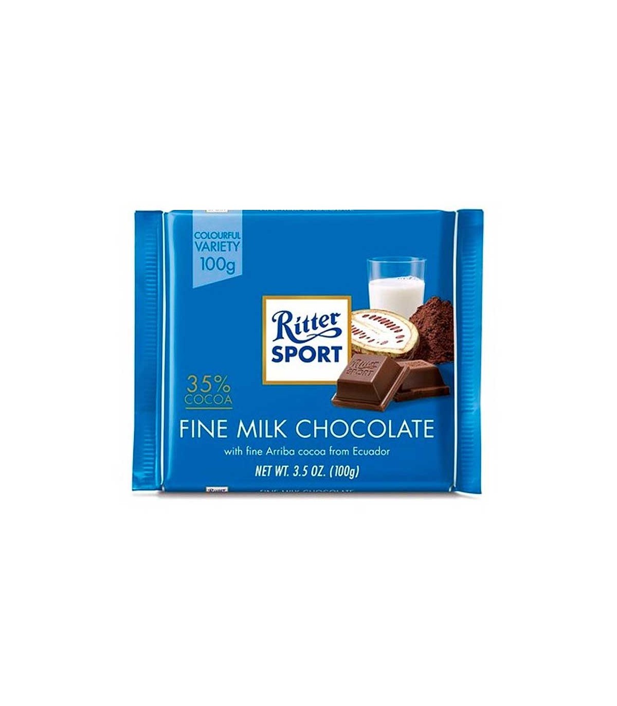 Chocolate con leche Ritter Sport 100 g, cremoso y de sabor equilibrado, ideal para disfrutar o regalar.