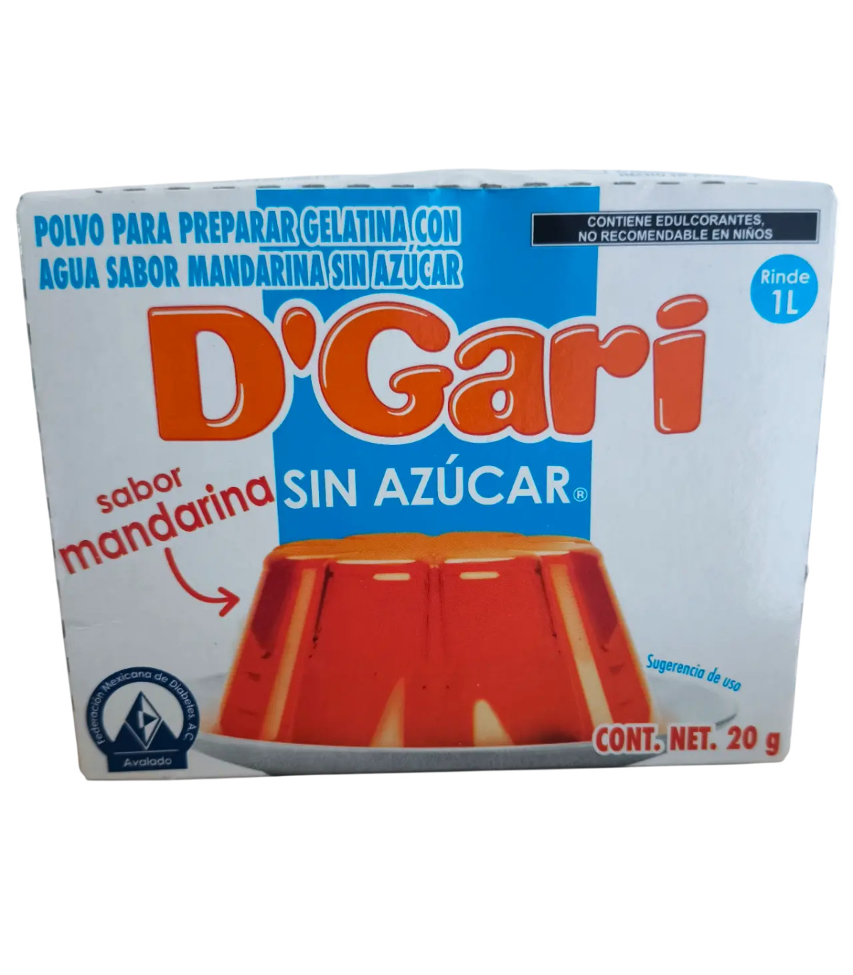 Gelatina sabor mandarina, presentación de 20 g