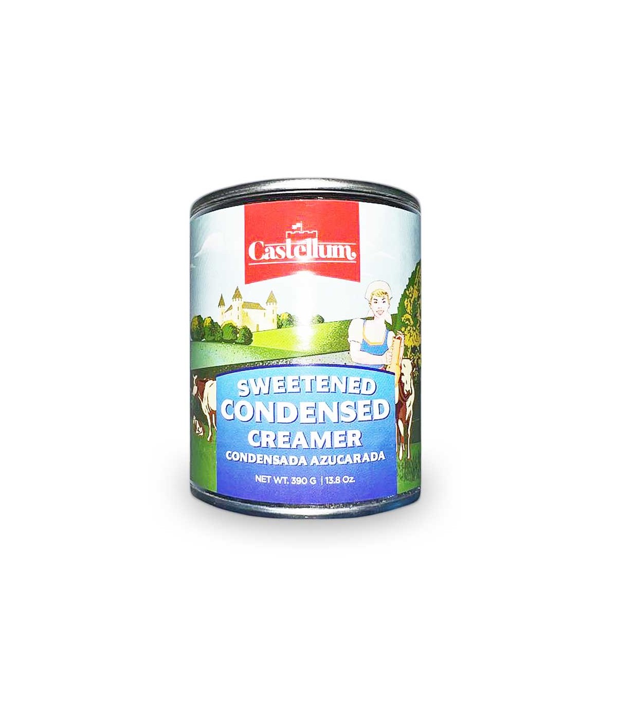 Leche condensada azucarada “Castellum”, presentación de 390 g. Muy valorada en Cuba por su sabor intenso, textura cremosa y utilidad en postres y desayunos.
