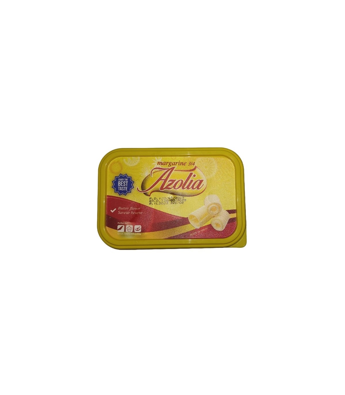 Margarina tropical Azolia, ideal para cocinar, untar y preparar recetas dulces y saladas.